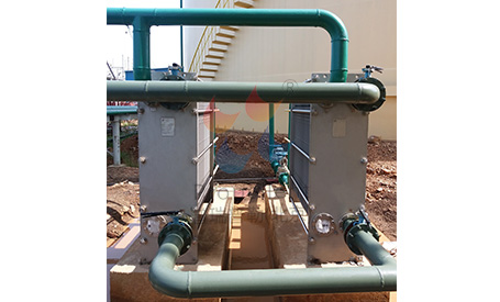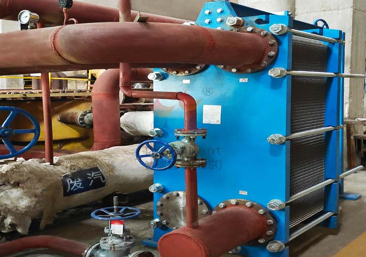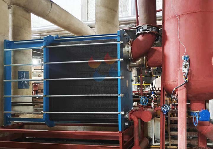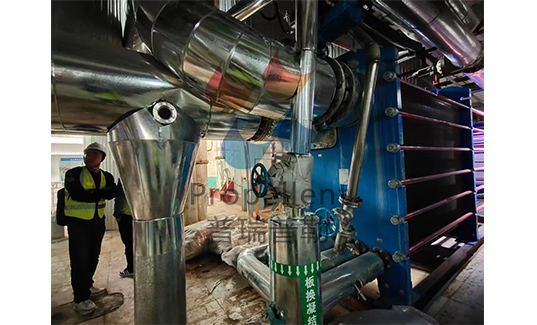 寬流道板式換熱器進行印染廢水余熱回收,將廢水中的熱量傳遞給工藝用水,節約能源,提高生產效率。